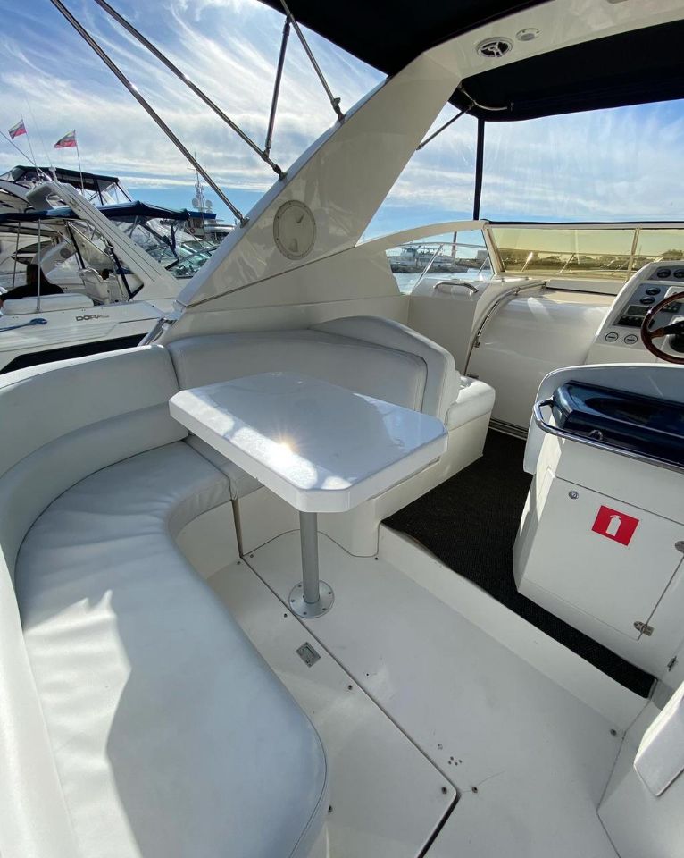 На носу находится мягкая кожаная подушка, где вы сможете с комфортом расположиться для принятия солнечных ванн. Также на носовой части имеются подстаканники , куда вы сможете поставить напитки. За столом удобно будет расположиться компании до 8 человек. а вместительность катера до 11 гостей. Также катер оборудован специальной лестницей, для удобства купания. В стоимость аренды входят снасти и удочки для улова рыбы.