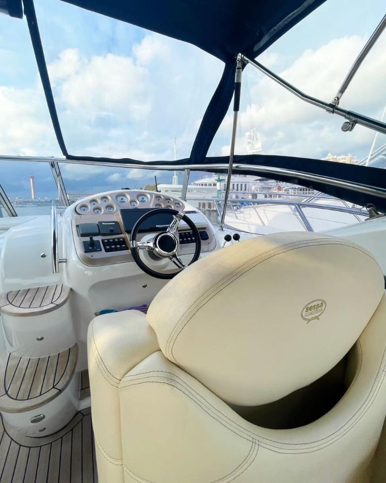- Это моторная яхта длиной около 35 футов, производства итальянской верфи Sessa Marine.