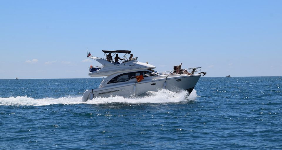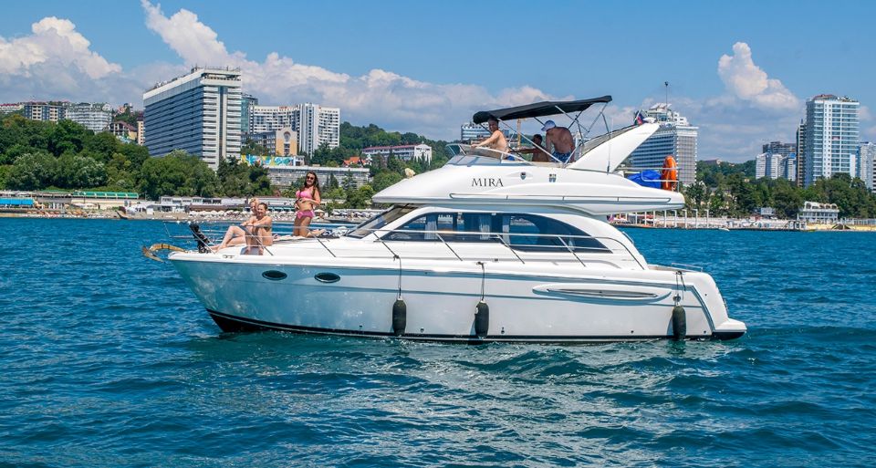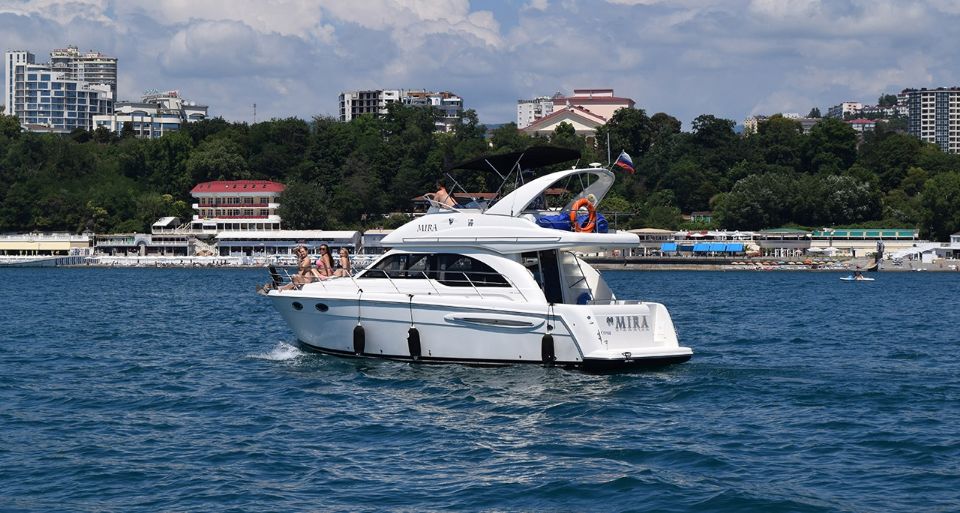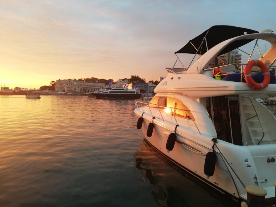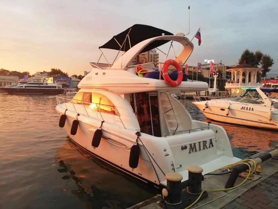Белоснежная большая яхта класса ЛЮКС, с просторной кают компанией и широкой подушкой для принятия солнечных ванн. Фотографии на этой яхте получаются бомбовские!!)) Вы можете находиться, как на верхней палубе, так и на нижней. Так же на ней установлена отличная стерео система и в вечернее время включается красивая, яркая подсветка.