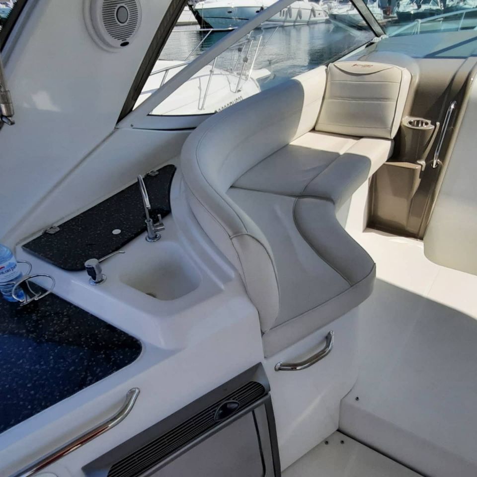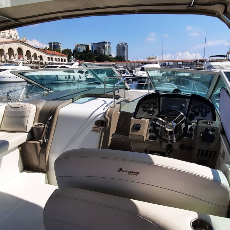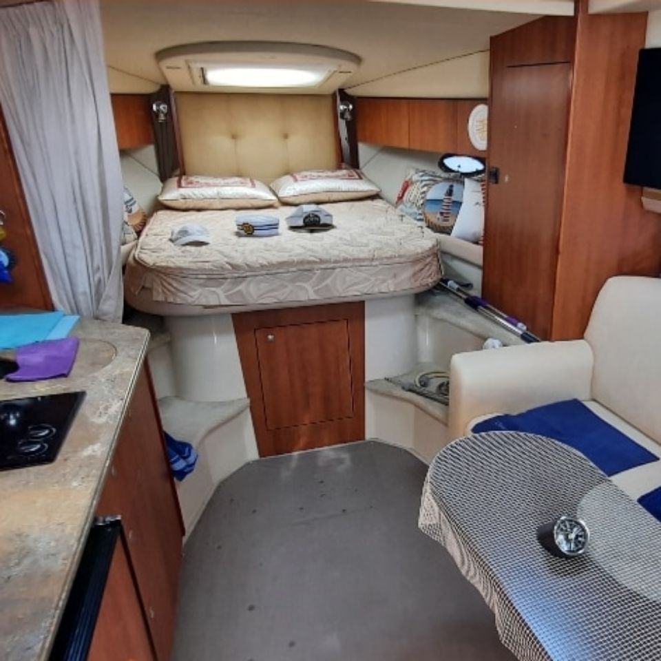 Роскошная, элегантная круизная яхта "Принцесса Анастасия" порадует вас просторной посадочной зоной на кокпите, где без тесноты разместится до 11 гостей. Выход на носовую часть откроет вашему взору превосходный обзор на 360 градусов, где вы сможете вальяжно расположиться на широких, мягких удобных лежаках. Также на носовой части - лучшее место для принятия солнечных ванн. Быстроту и плавность хода обеспечивают 2 мощных дизельных двигателя VOLVO PENTA, а электронная система управления креном, позволит вам почти не ощущать качки на волнах. Белоснежные мягкие диваны из специальной кожи, позволят вам комфортно отдыхать во время морской прогулки. На борту также имеется уютная кают-компания с душем, туалетом и мягкими диванами для комфортного отдыха. Также можно воспользоваться чайником, микроволновкой. Аудиосистема имеет подключение по bluetooth, и вы всегда можете насладиться своей любимой музыкой в открытом море.